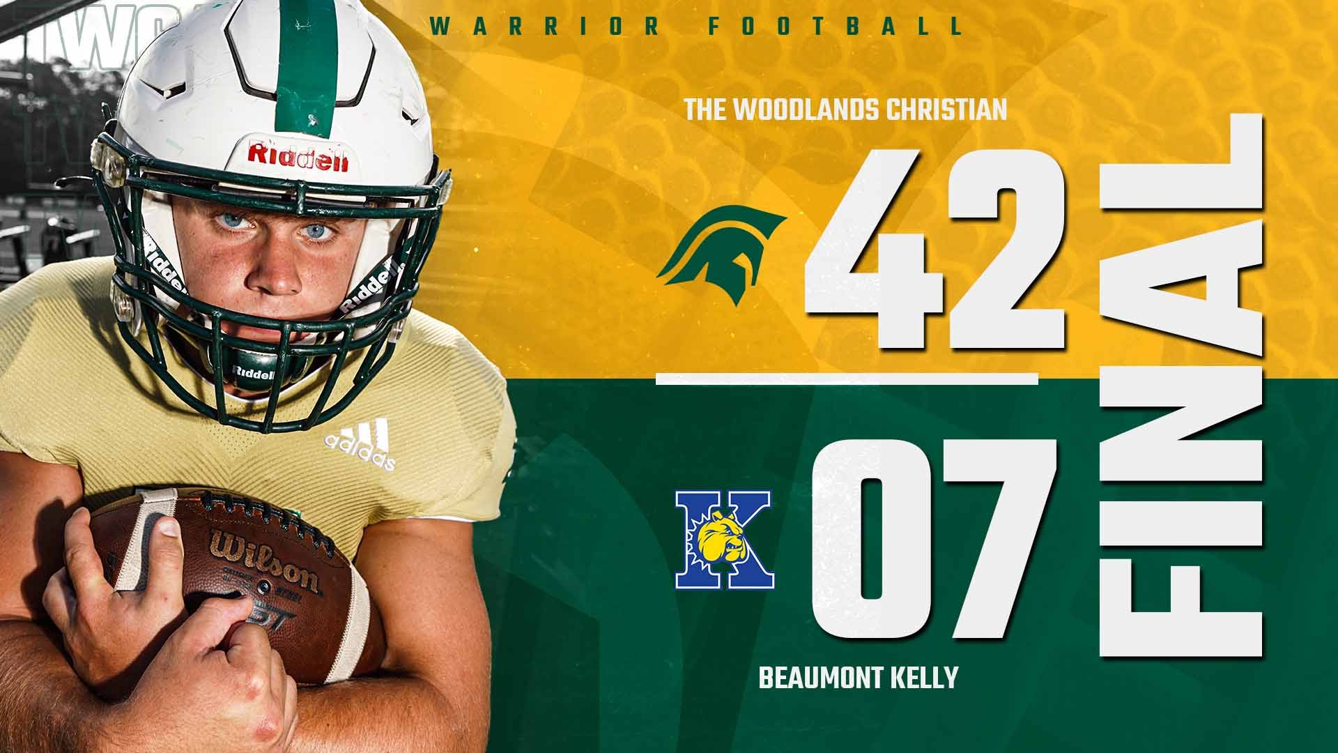 Aug 27 The Woodlands Christian Academy 62 Legacy Prep 13